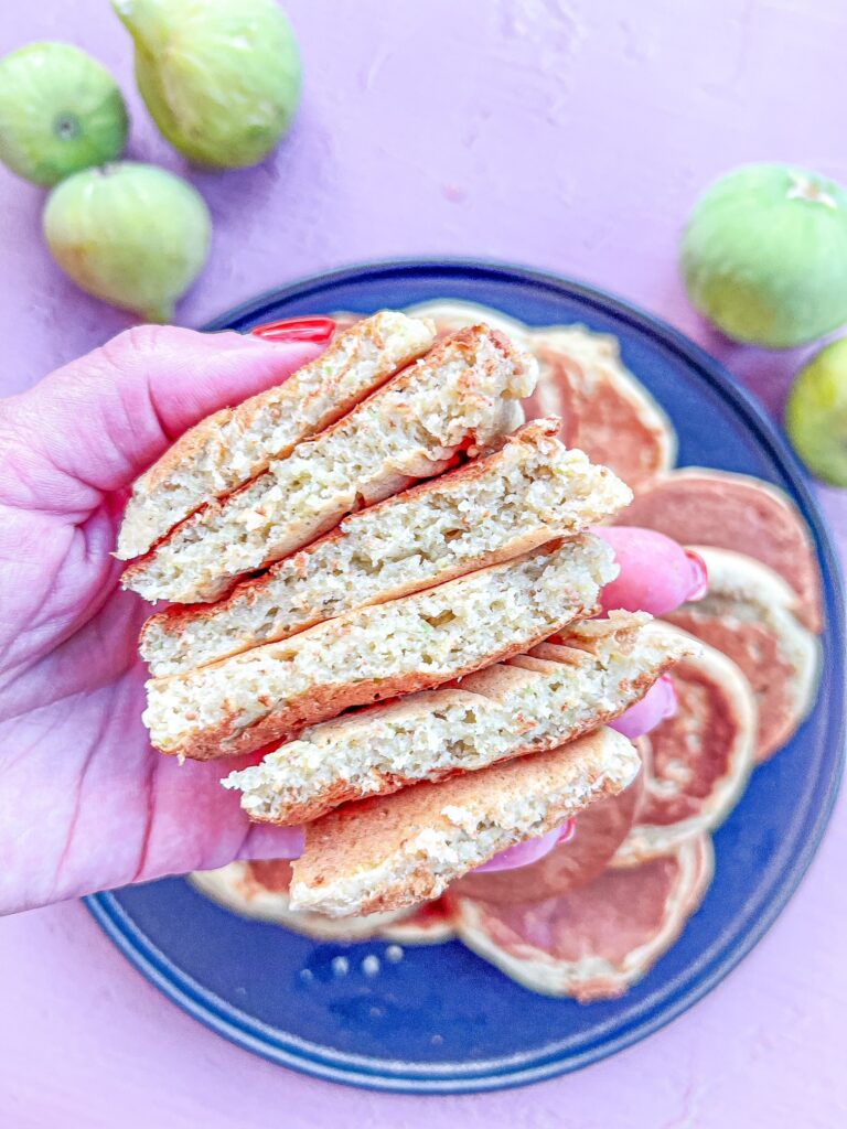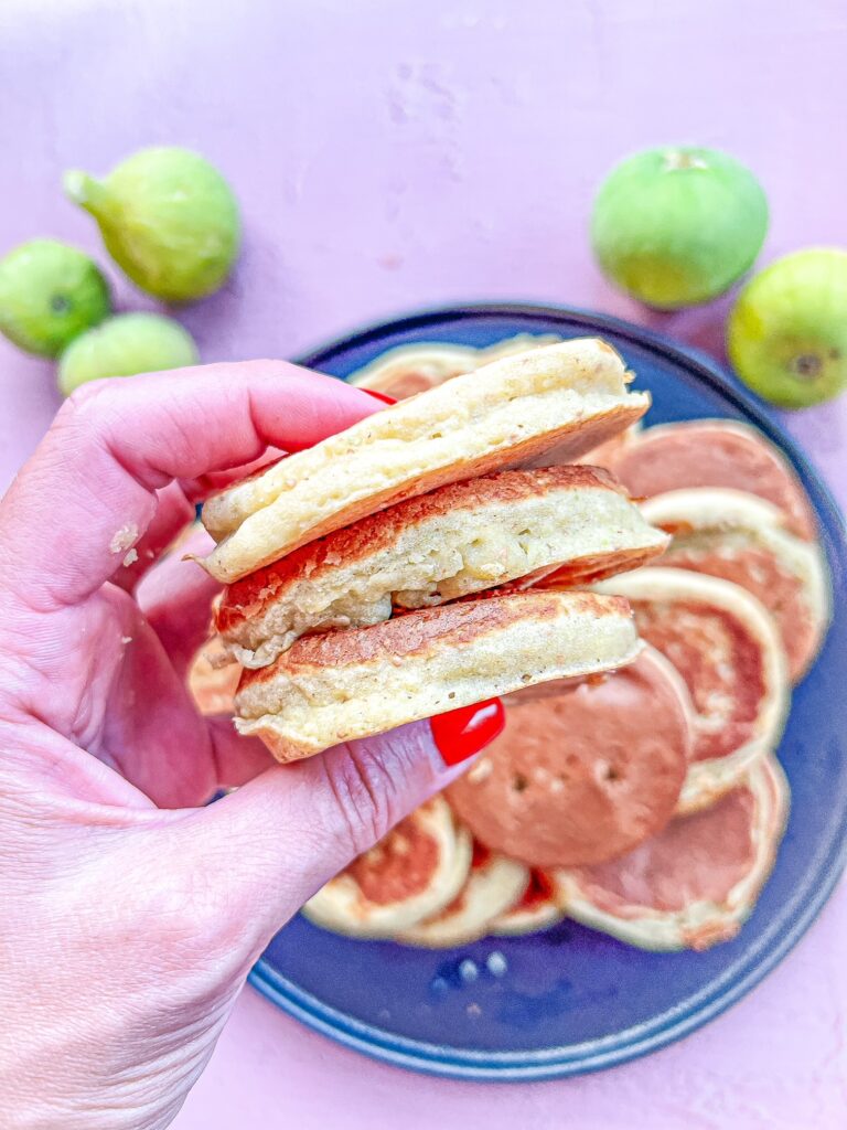 Εάν έχεις τα σύκα τότε τα υπόλοιπα υλικά σίγουρα βρίσκονται στην κουζίνα σου αυγά και αλεύρι που φουσκώνει μόνο του ή αλεύρι και μπέικιν πάουντερ. Τα σύκα τα χρησιμοποιούμε ολόκληρα με τη φλούδα στη συνταγή, θα χρειαστούμε ένα μικρό μπλέντερ όπου θα χτυπήσουμε απλά τα σύκα με τα αυγά και στη συνέχεια το αλεύρι. Τόσο εύκολα και το αποτέλεσμα καταπληκτικό! Καλύτερο θα πώ και από τις τηγανίτες με μπανάνα που είχα φτιάξει εδώ και έχουν ίδια σύσταση.