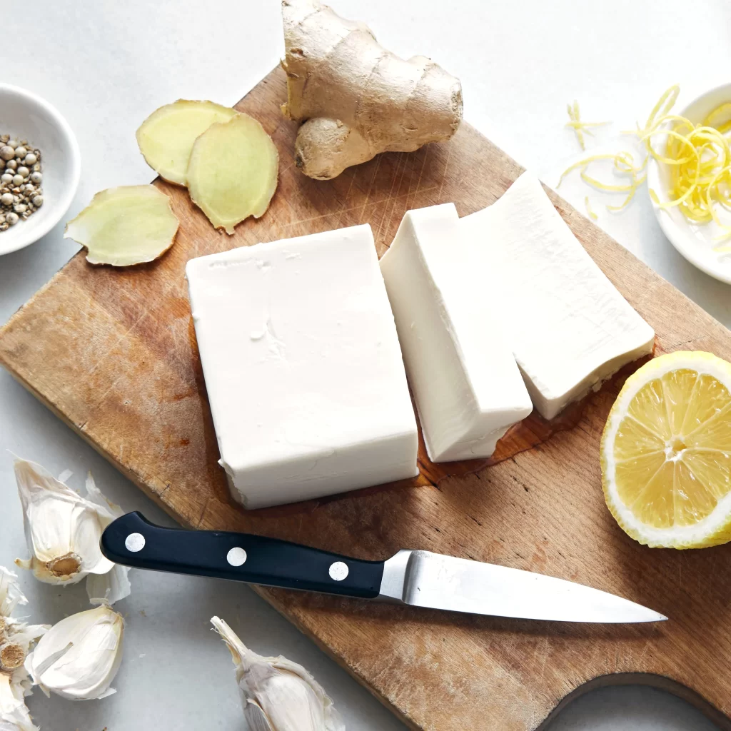 ΤΕΜΦΕ:Το Tempeh είναι ένα κάπως “χοντροκομμένο”, αλλά και τρυφερό προϊόν σόγιας. Ολόκληρα φασόλια σόγιας, μερικές φορές αναμεμειγμένα με κάποιο άλλο δημητριακό, όπως ρύζι ή κεχρί, ζυμώνονται και πιέζονται σε κέικ ή μπάρα με καπνιστή ή καρυδούχα γεύση. Μπορεί να κοπεί σε φέτες, να μαριναριστεί και να ψηθεί στη σχάρα και να προστεθεί σε σούπες, κατσαρόλες ή τσίλι.